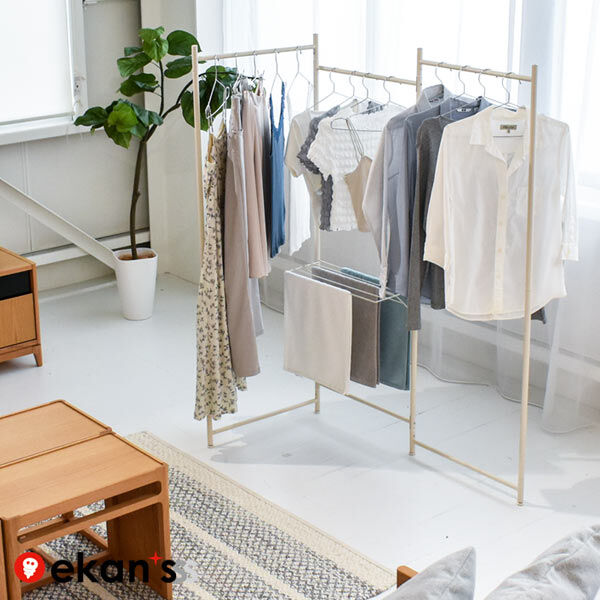 エカンズの物干しは、取り扱いが非常に簡単で、使わないときには折りたたんで収納できるため、スペースを取らずに済みます。