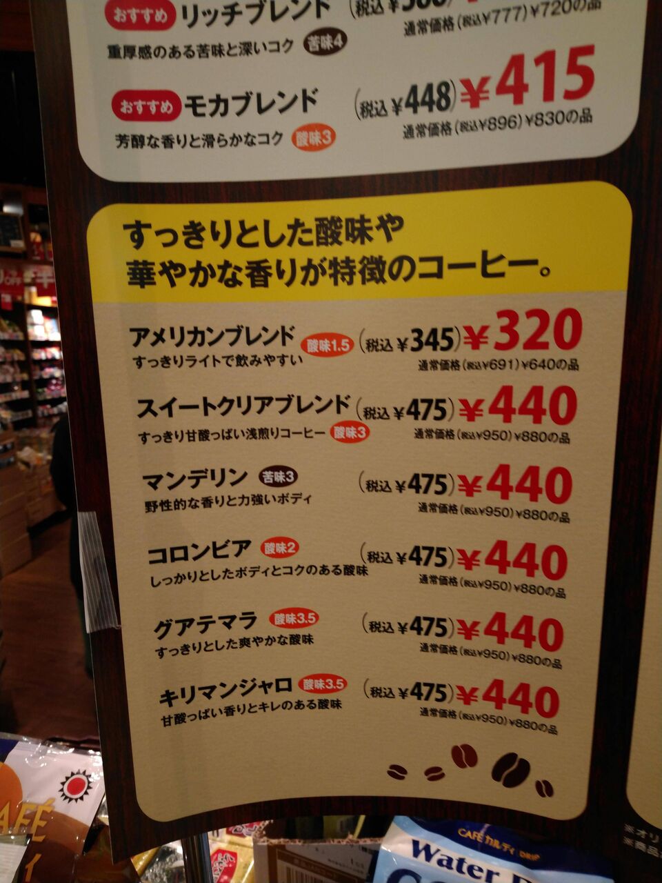 そのオリジナル豆がセールの時は半額だったのが、特別価格ってやつ(いくらかは知らない)になったんだよ