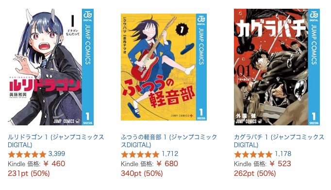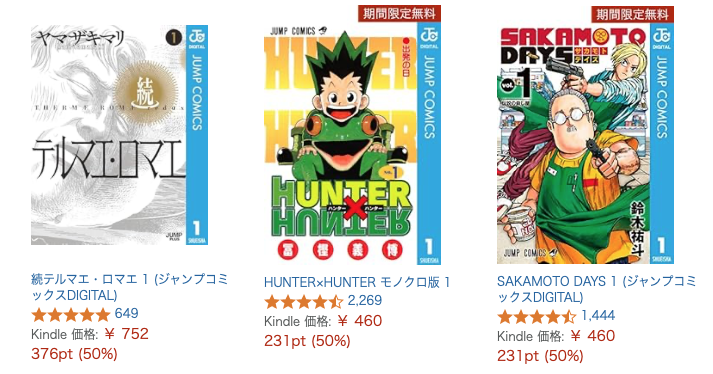 滅多にやってこないジャンプ系とか半額(還元)