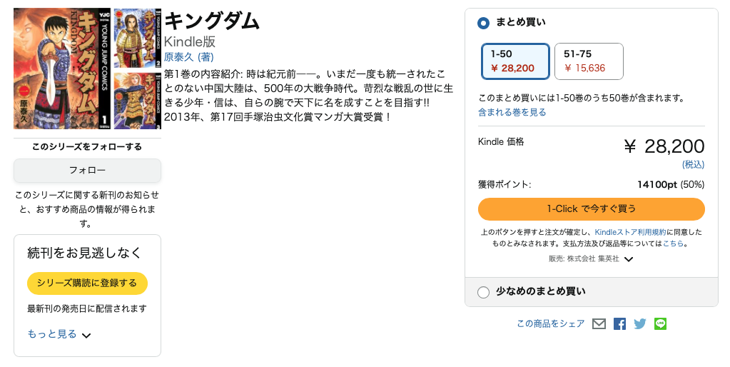 しかも10冊以上のまとめ買いでさらに10%付くらしい!!!!!!!